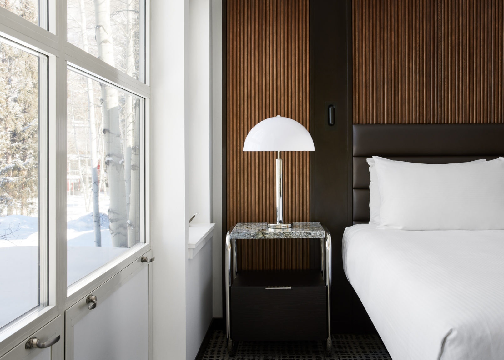 Restoration & recreation of an historic Herbert Beyer Bauhaus-designed 98 room all-suites mountain resort located in the world famous Aspen Institute campus. SDW design reimagines what the interiors would have looked like if designed by the Bauhaus with contemporary Scandinavian warmth.